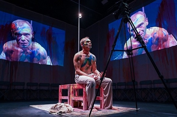 Kadr z przedstawienia Performans wg Fiodora Dostojewskiego w Teatrze Witkacego (Zakopane). Fot. Marcin Szkodziński. Źródło: https://gazetakrakowska.pl/performance-w-teatrze-witkacego-w-zakopanem-spektakl-ktory-ewoluowal-wraz-z-zyciem/gh/c13-18711099/2 [dostęp: 28.02.2026].
